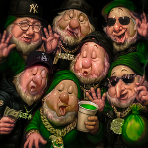 Siedem banknotów na komodzie, wyglądają jak siedmiu krasnoludków